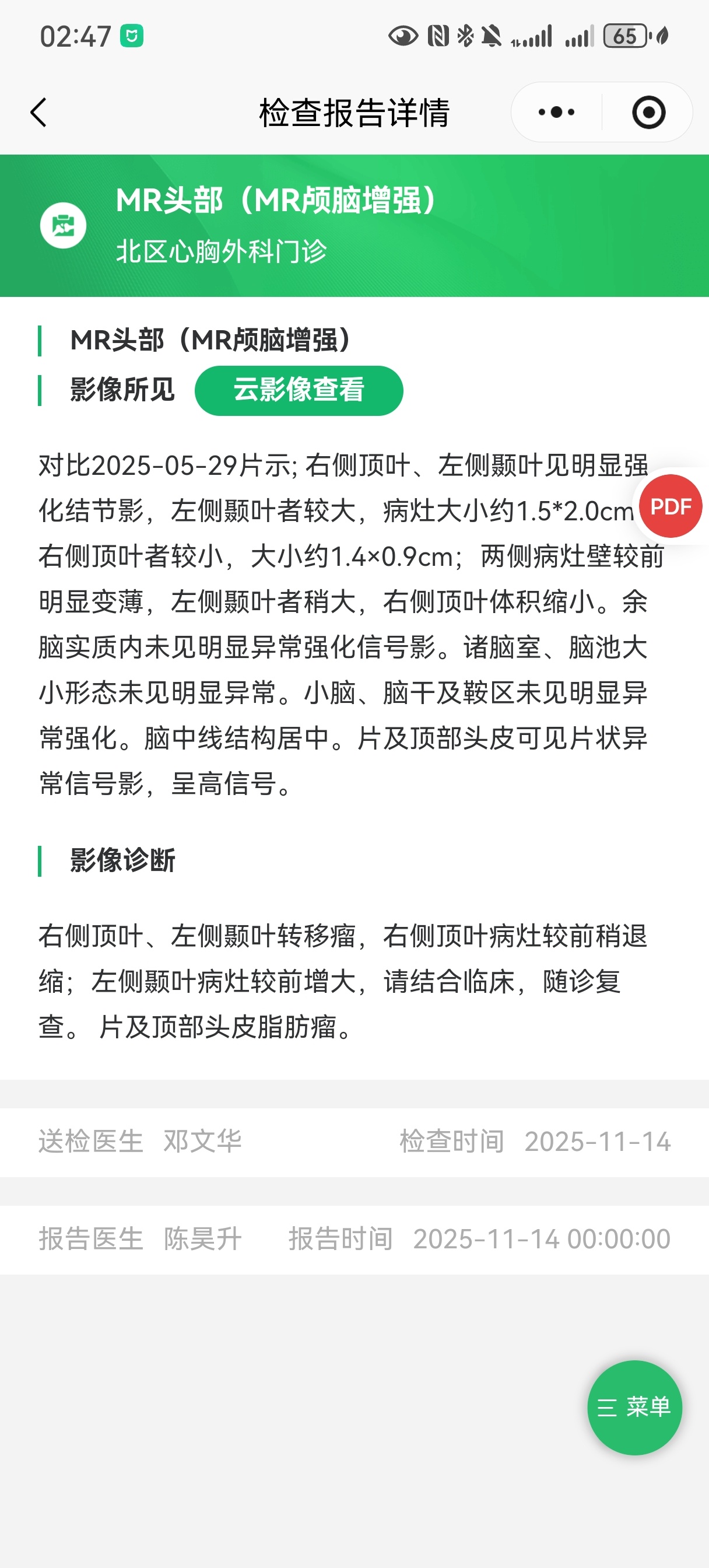 希言xian 发表于 2025-11-14 14:49 请问这算脑部进展了吗,说变薄了,但有个又变大了@申医生 @闯关3AN2